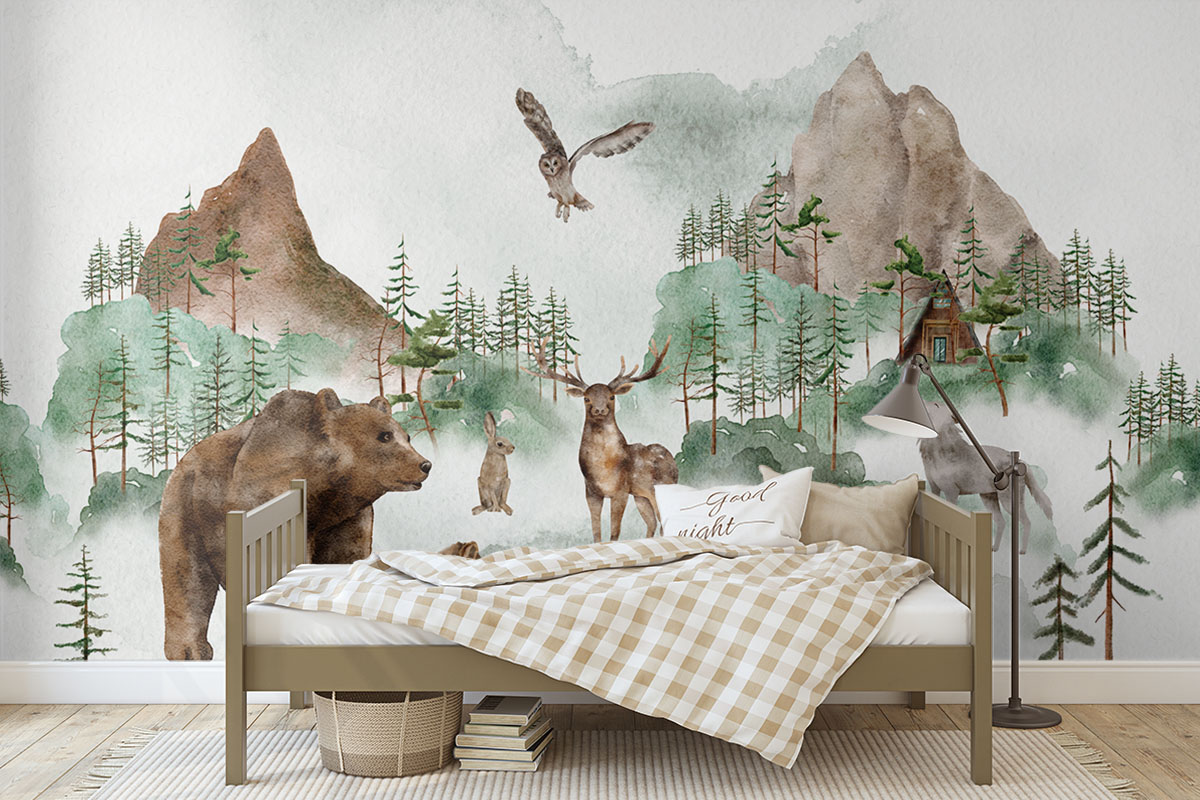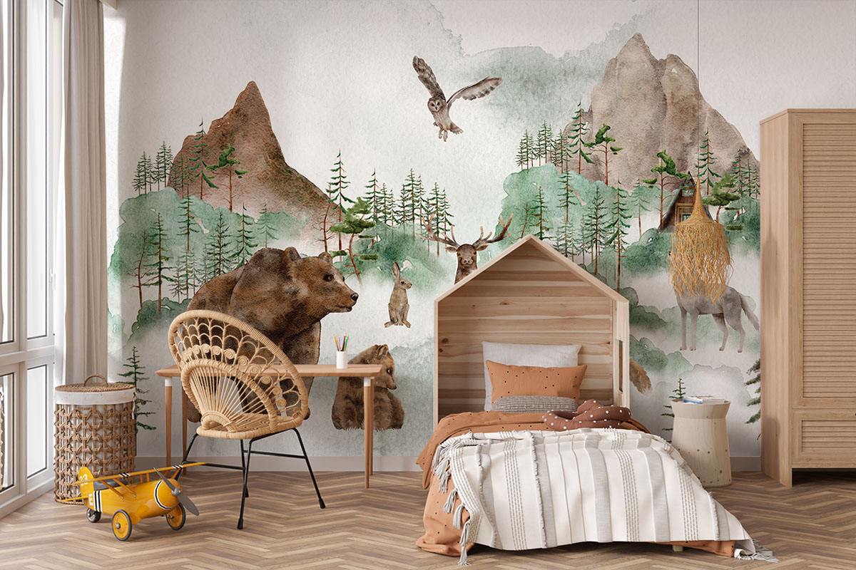 Jouw design Wilde dieren in de bergen wordt geprint op hoogwaardig duurzaam vliesbehang van premium kwaliteit. Dit stevige behang (200 g/m²) is krasvast, robuust en blijft jarenlang mooi — perfect voor in de kinderkamer, babykamer of speelkamer. Je kunt het behang helemaal op maat laten maken, zodat het ontwerp precies past op jouw muur. Dankzij de gladde afwerking en strakke structuur komt elk detail van het ontwerp perfect tot zijn recht.