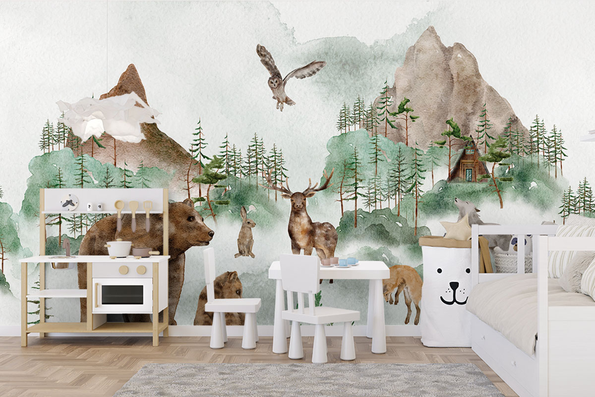 Wil je naast het behang ook een muur in de baby- of kinderkamer verven? Wij hebben alvast 3 Flexa Pure kleuren geselecteerd die perfect passen bij dit fotobehang Wilde dieren in de bergen.