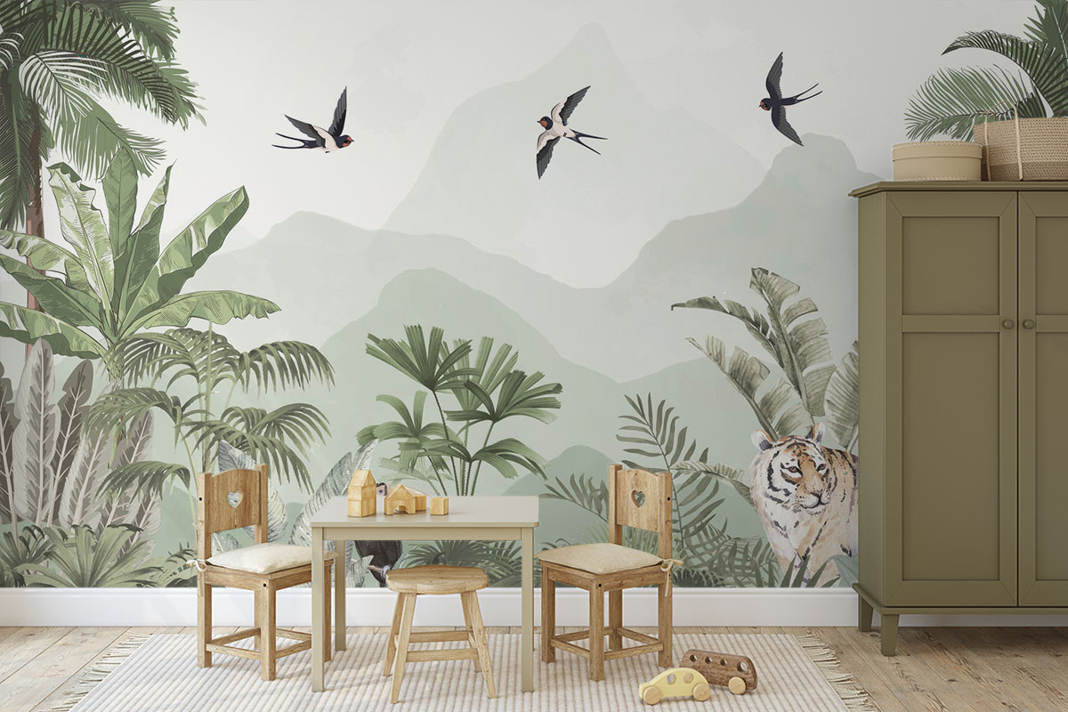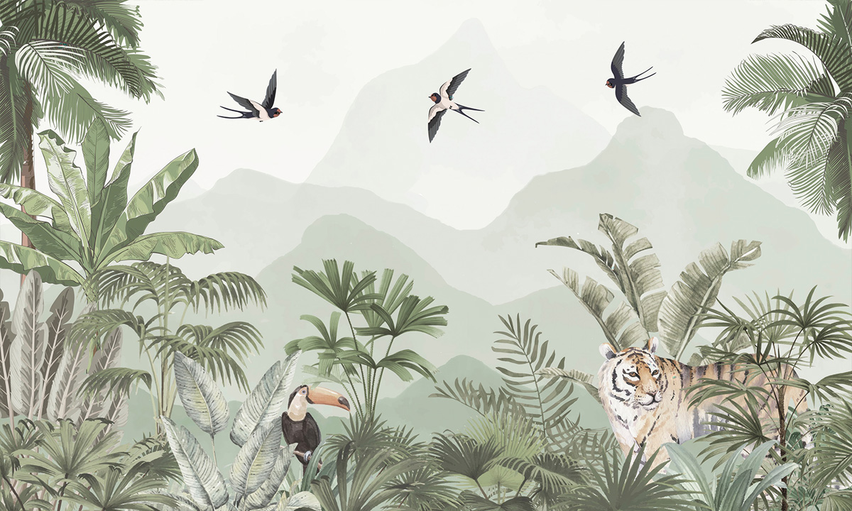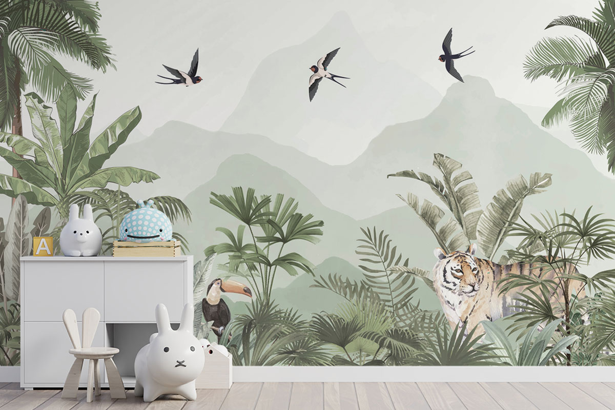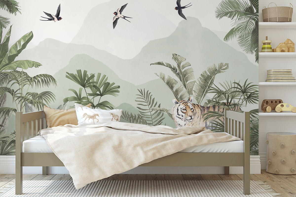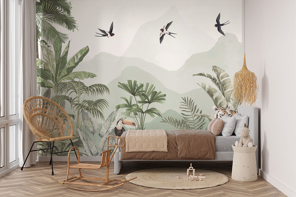Wil je naast het behang ook een muur in de baby- of kinderkamer verven? Wij hebben alvast 3 Flexa Pure kleuren geselecteerd die perfect passen bij dit fotobehang Woud van wonderen.