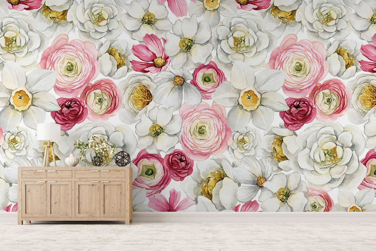 Jouw design Zachte lentebloemen wordt geprint op hoogwaardig vliesbehang van premium kwaliteit. Dit stevige behang (200 g/m²) is duurzaam, krasvast en behoudt jarenlang zijn kleur en structuur — perfect voor elke woonruimte, van woonkamer tot slaapkamer of kantoor. Het fotobehang wordt volledig op maat gemaakt, zodat het ontwerp naadloos aansluit op jouw muur. Dankzij de gladde afwerking en strakke structuur komen kleuren en details prachtig tot leven.