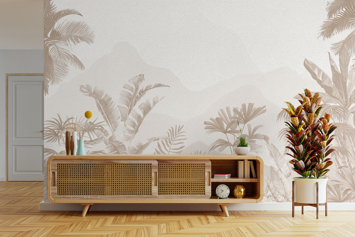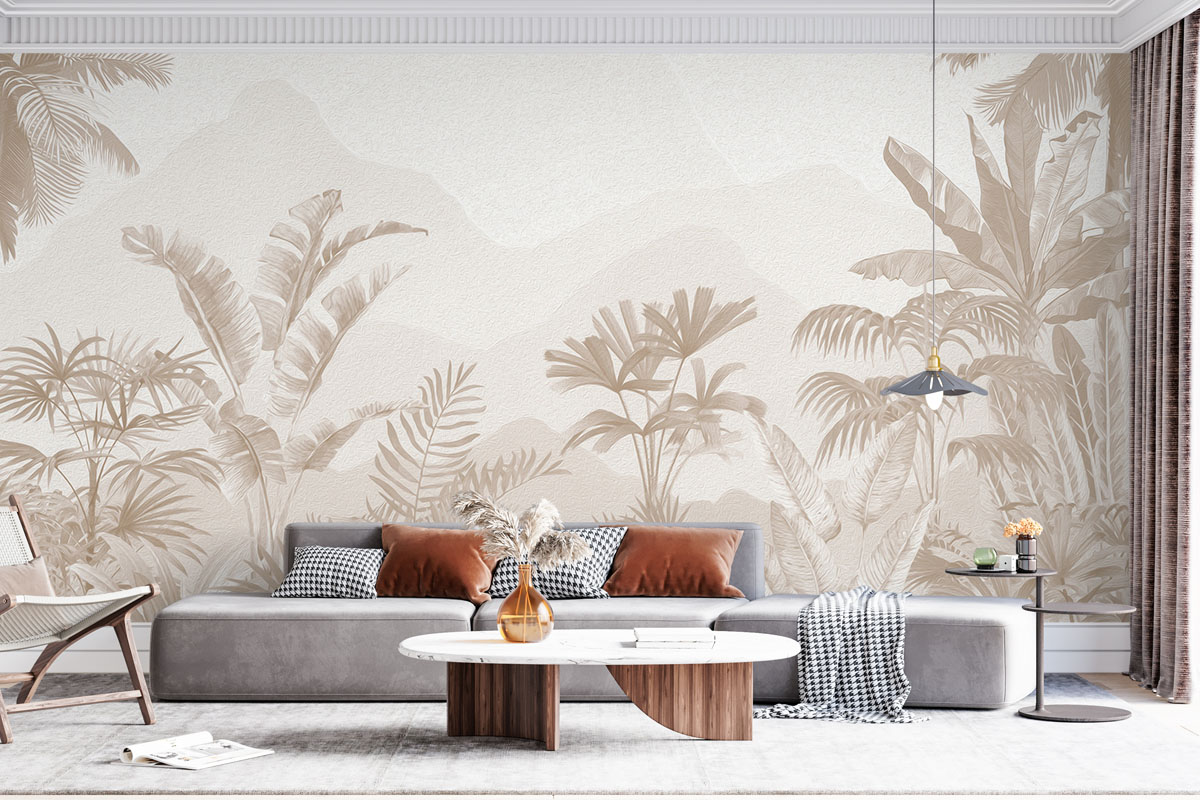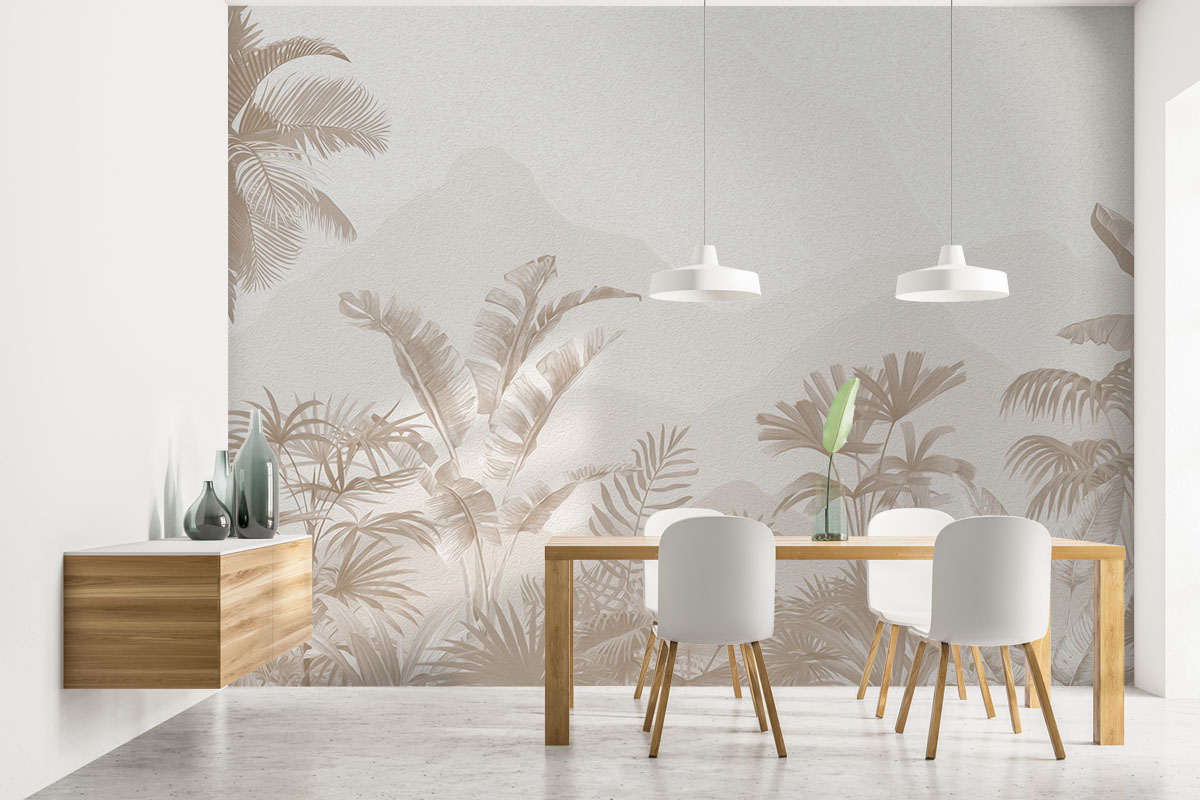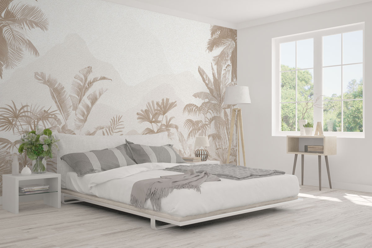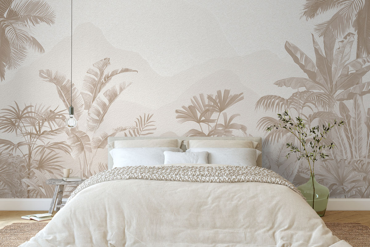 Wil je de muur combineren met verf? We hebben drie Flexa Pure kleuren geselecteerd die perfect matchen met dit fotobehang Zandpalmen. Zo creëer je eenvoudig een harmonieus interieur.