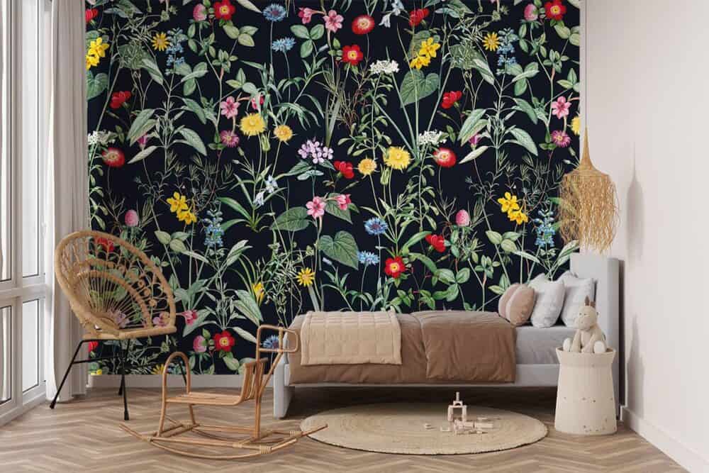 Wil je naast het behang ook een muur in de baby- of kinderkamer verven? Wij hebben alvast 3 Flexa Pure kleuren geselecteerd die perfect passen bij dit fotobehang Zomer bloemen en planten.
