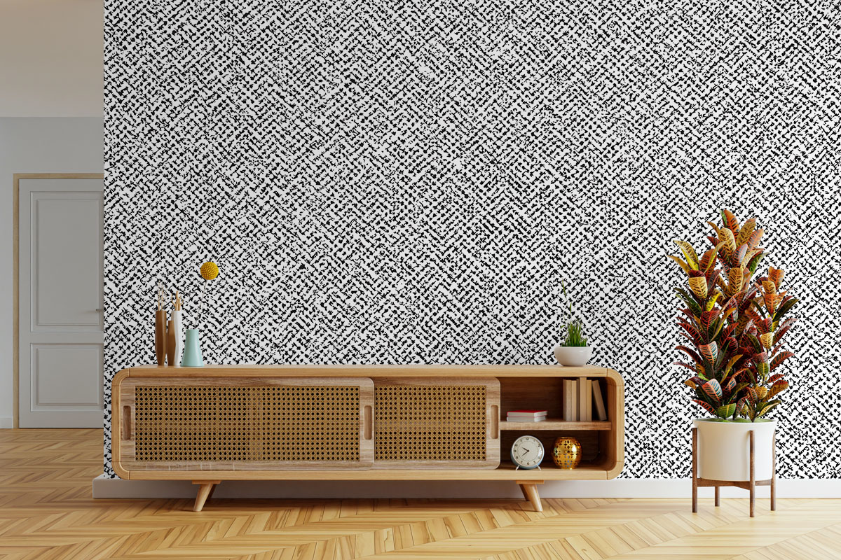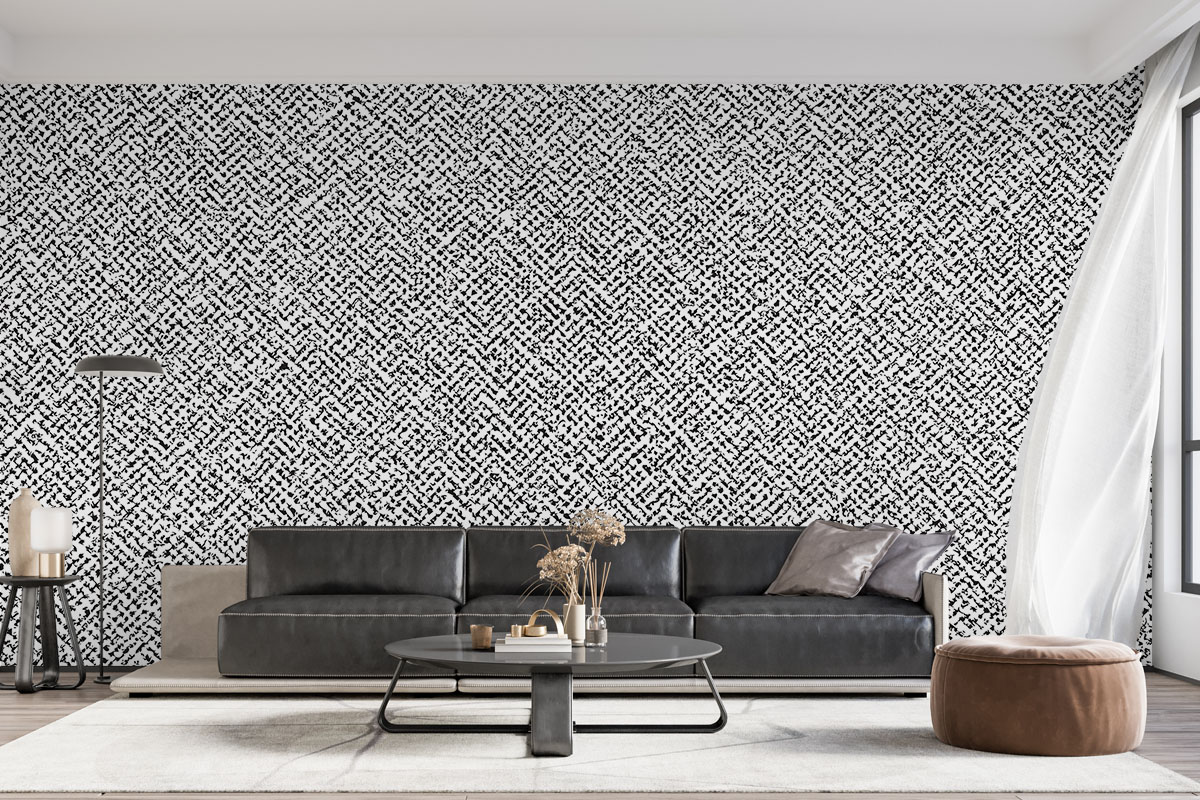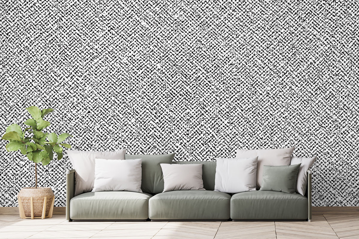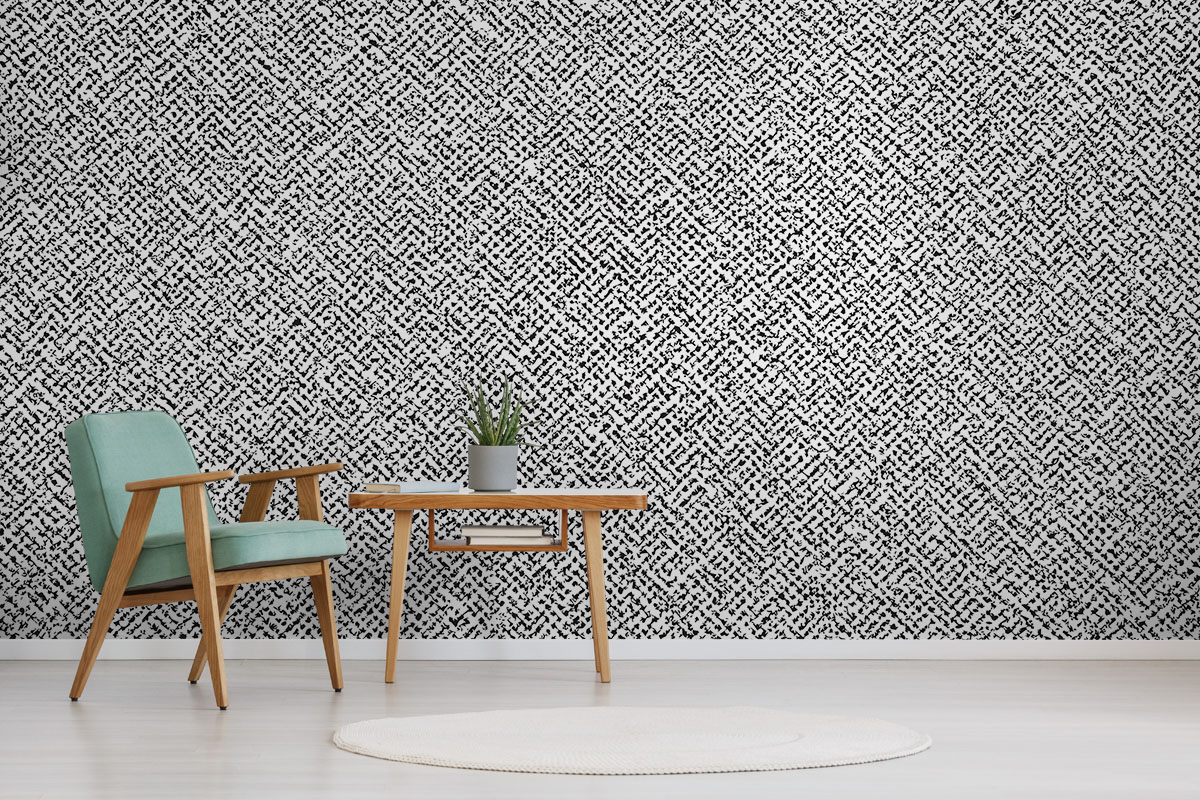 Zwart-wit patroon met fijne kruisarcering. Subtiel, modern en tijdloos voor elke interieurstijl.