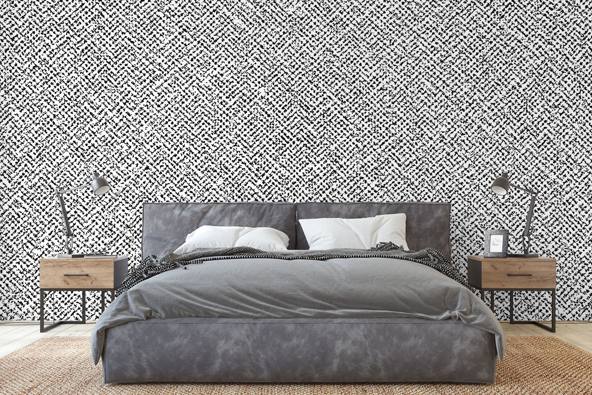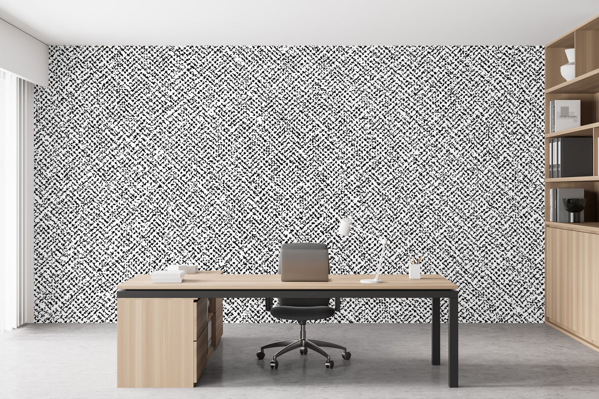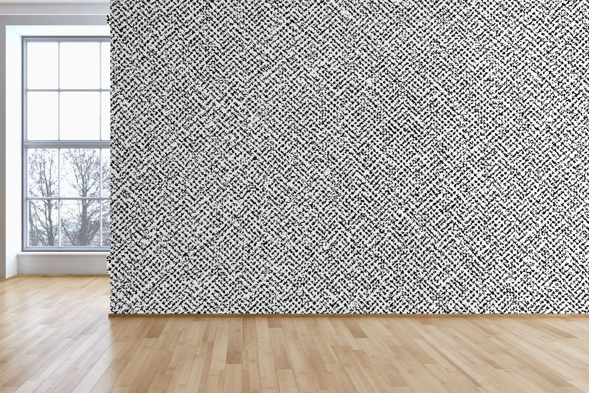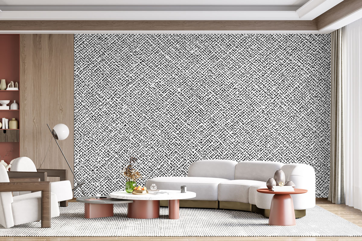 Zwart-wit patroon met fijne kruisarcering. Subtiel, modern en tijdloos voor elke interieurstijl.