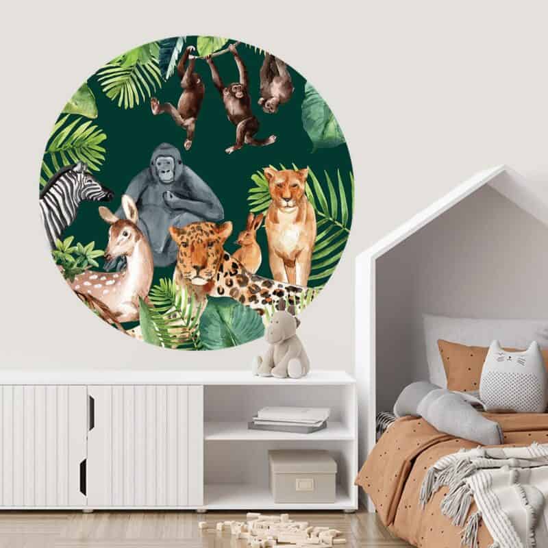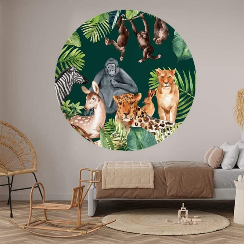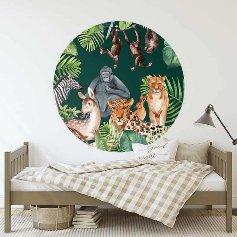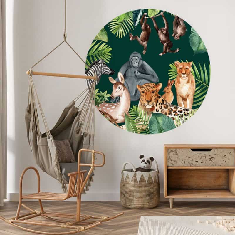 Met een behangcirkel (ook wel ronde muursticker genoemd) geef je de kinderkamer, babykamer, speelkamer of andere ruimte direct een nieuw en fris uiterlijk! Behangcirkel ‘Alle dieren op een rij’ wordt op een kwalitatief hoog materiaal geprint, waardoor het design en kleuren goed tot zijn recht komen. Ook zijn onze behangcirkels weer gemakkelijk te verwijderen, zonder lijmresten achter te laten op de muur.