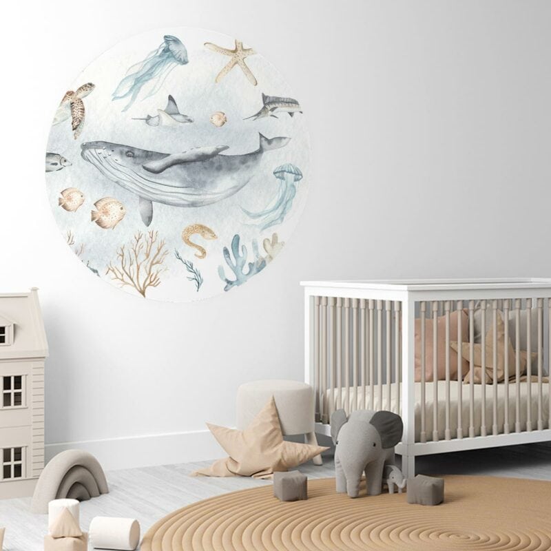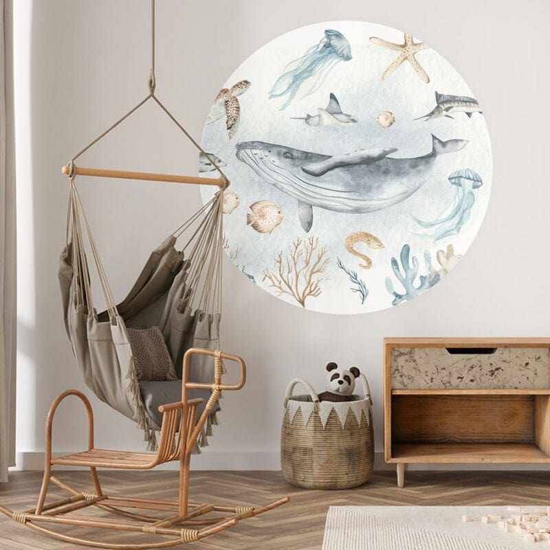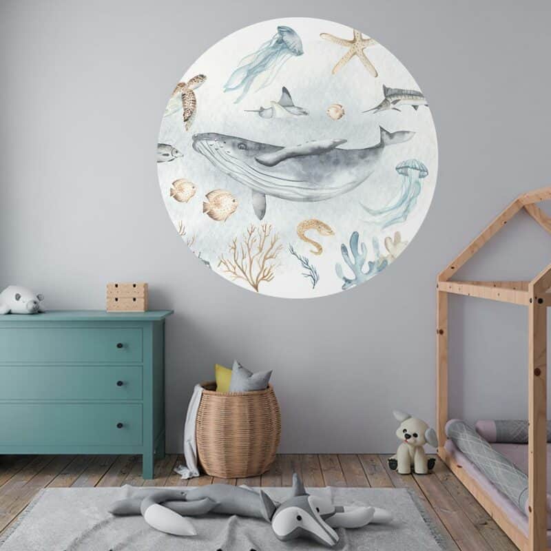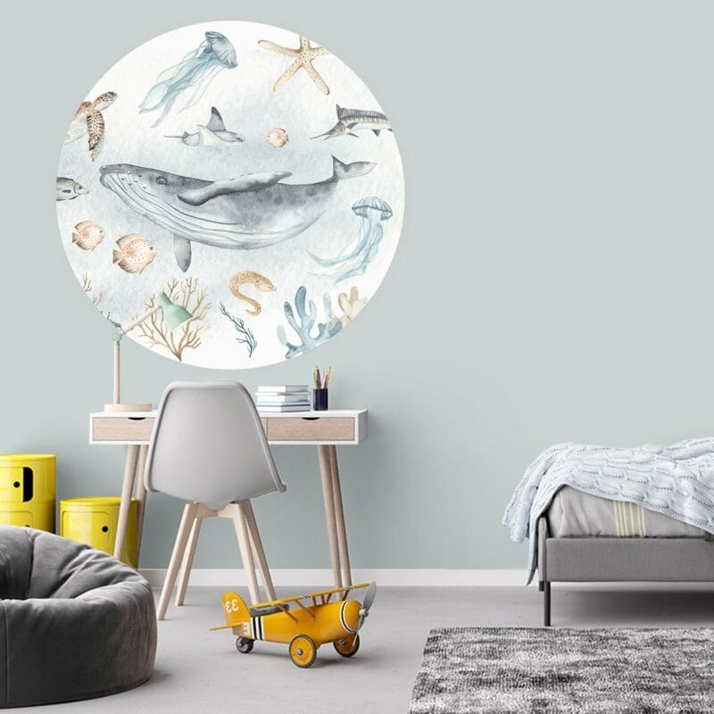 Met een behangcirkel (ook wel ronde muursticker genoemd) geef je de kinderkamer, babykamer, speelkamer of andere ruimte direct een nieuw en fris uiterlijk! Behangcirkel ‘Onderwater dierenrijk’ wordt op een kwalitatief hoog materiaal geprint, waardoor het design en kleuren goed tot zijn recht komen. Ook zijn onze behangcirkels weer gemakkelijk te verwijderen, zonder lijmresten achter te laten op de muur.
