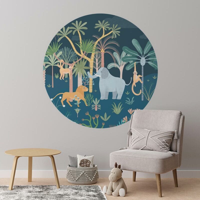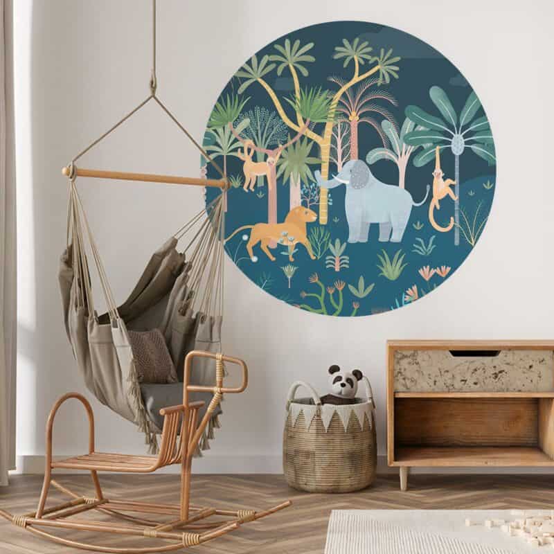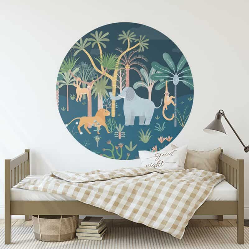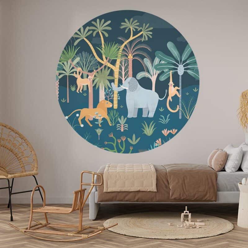 Dacht jij rustig te slapen op jouw kamer… niet met deze savanne behangcirkel! Juist ’s nachts houden deze vrolijke dieren jou gezelschap.