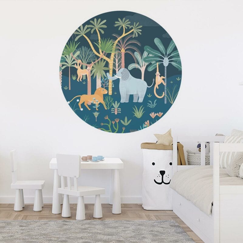 Met een behangcirkel (ook wel ronde muursticker genoemd) geef je de kinderkamer, babykamer, speelkamer of andere ruimte direct een nieuw en fris uiterlijk! Behangcirkel ‘Op de savanne bij nacht’ wordt op een kwalitatief hoog materiaal geprint, waardoor het design en kleuren goed tot zijn recht komen. Ook zijn onze behangcirkels weer gemakkelijk te verwijderen, zonder lijmresten achter te laten op de muur.
