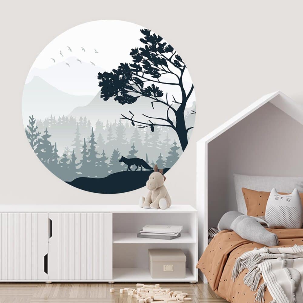 Met een behangcirkel (ook wel ronde muursticker genoemd) geef je de kinderkamer, babykamer, speelkamer of andere ruimte direct een nieuw en fris uiterlijk! Behangcirkel ‘Vos in mistig bos’ wordt op een kwalitatief hoog materiaal geprint, waardoor het design en kleuren goed tot zijn recht komen. Ook zijn onze behangcirkels weer gemakkelijk te verwijderen, zonder lijmresten achter te laten op de muur.