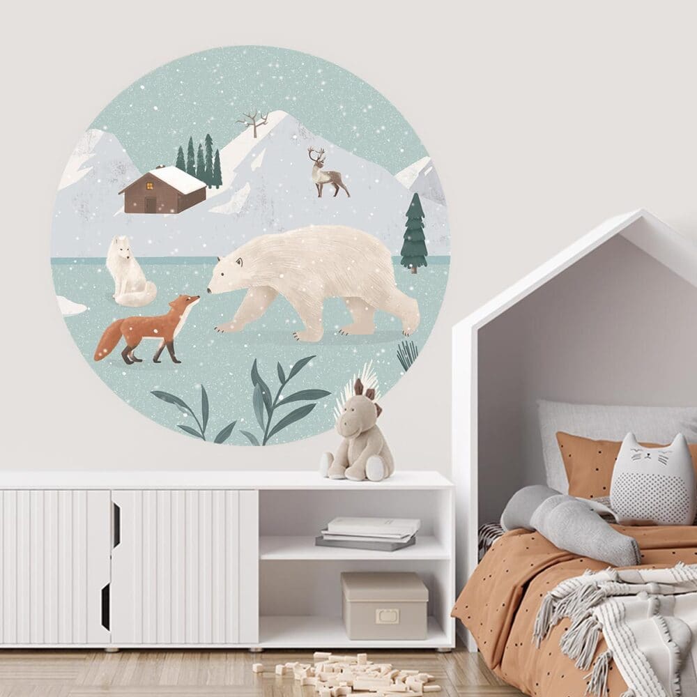 Met een behangcirkel (ook wel ronde muursticker genoemd) geef je de kinderkamer, babykamer, speelkamer of andere ruimte direct een nieuw en fris uiterlijk! Behangcirkel ‘Welkom op Antarctica’ wordt op een kwalitatief hoog materiaal geprint, waardoor het design en kleuren goed tot zijn recht komen. Ook zijn onze behangcirkels weer gemakkelijk te verwijderen, zonder lijmresten achter te laten op de muur.