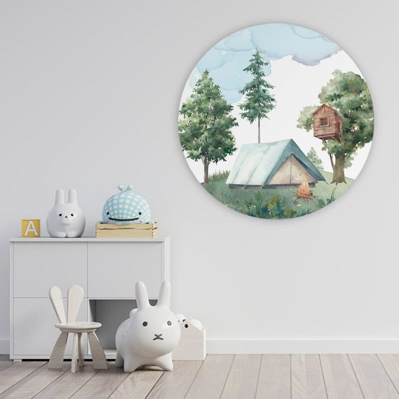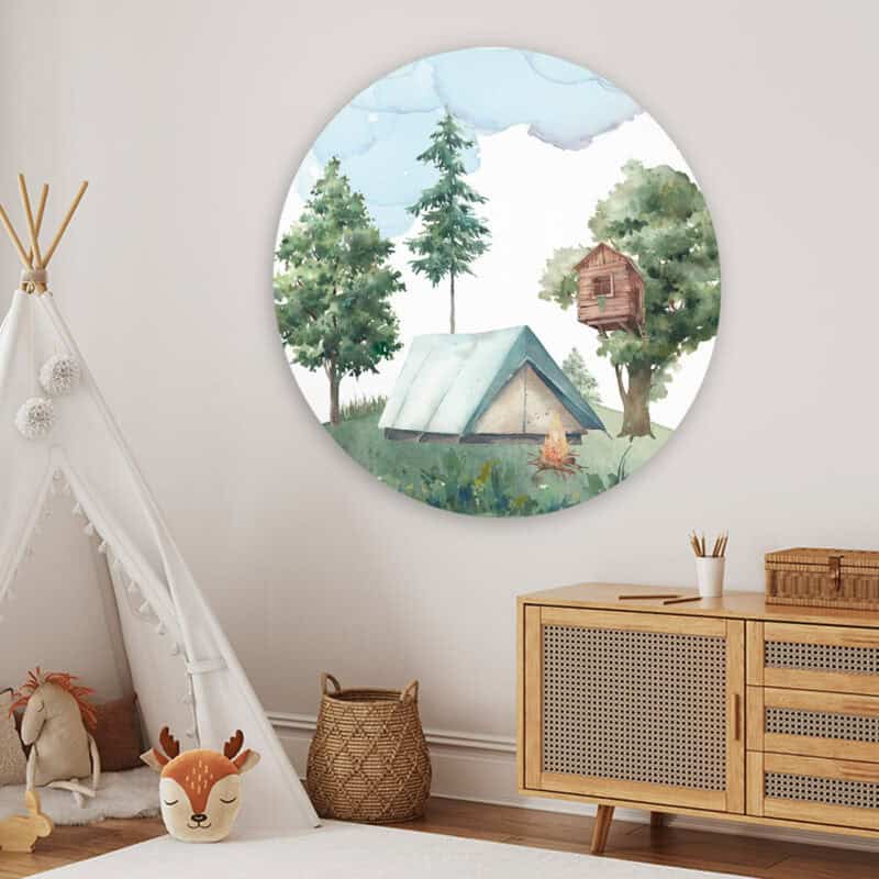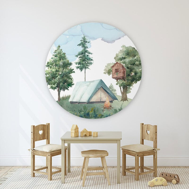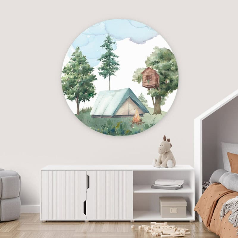 Een muurcirkel voor de echte avonturiers! Met een beetje fantasie klim je elek dag in de boomhut, warm je op bij het kampvuur en kampeer je in de tent.