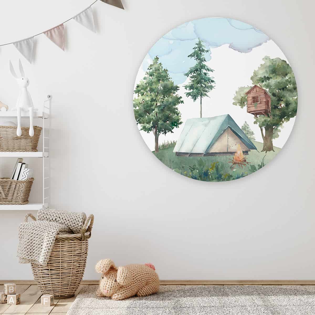 Een muurcirkel voor de echte avonturiers! Met een beetje fantasie klim je elek dag in de boomhut, warm je op bij het kampvuur en kampeer je in de tent.