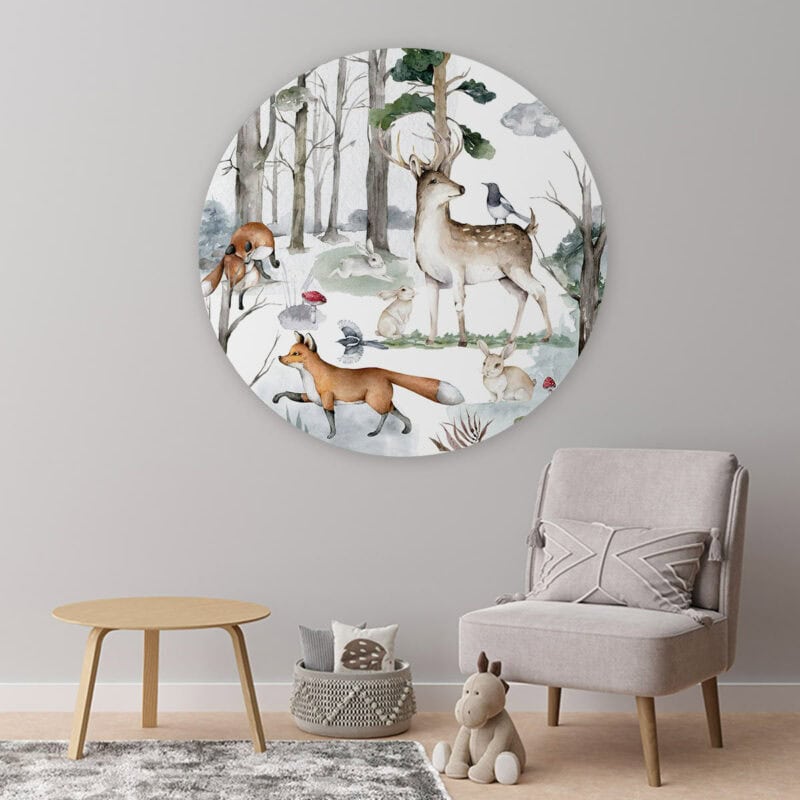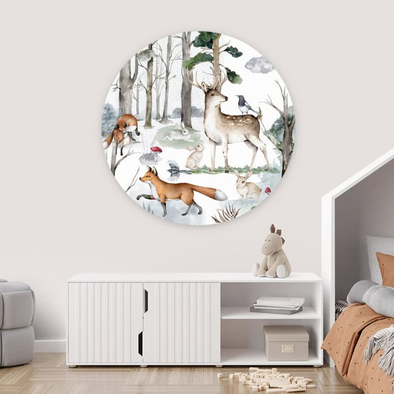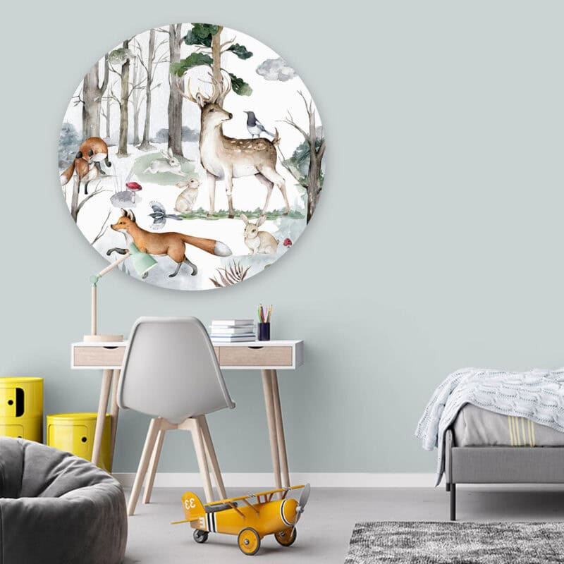 Onze prachtige ronde kunstwerken geven stijl aan elke kinderkamer, babykamer of speelkamer. In een handomdraai tover je de kamer om tot een fijne plek! Muurcirkel ‘Herfst in het bos’ wordt op een licht materiaal geproduceerd, heeft een uitstekende kleurweergave en een lichte structuur. Hierdoor krijgt de wandcirkel een stoere look.