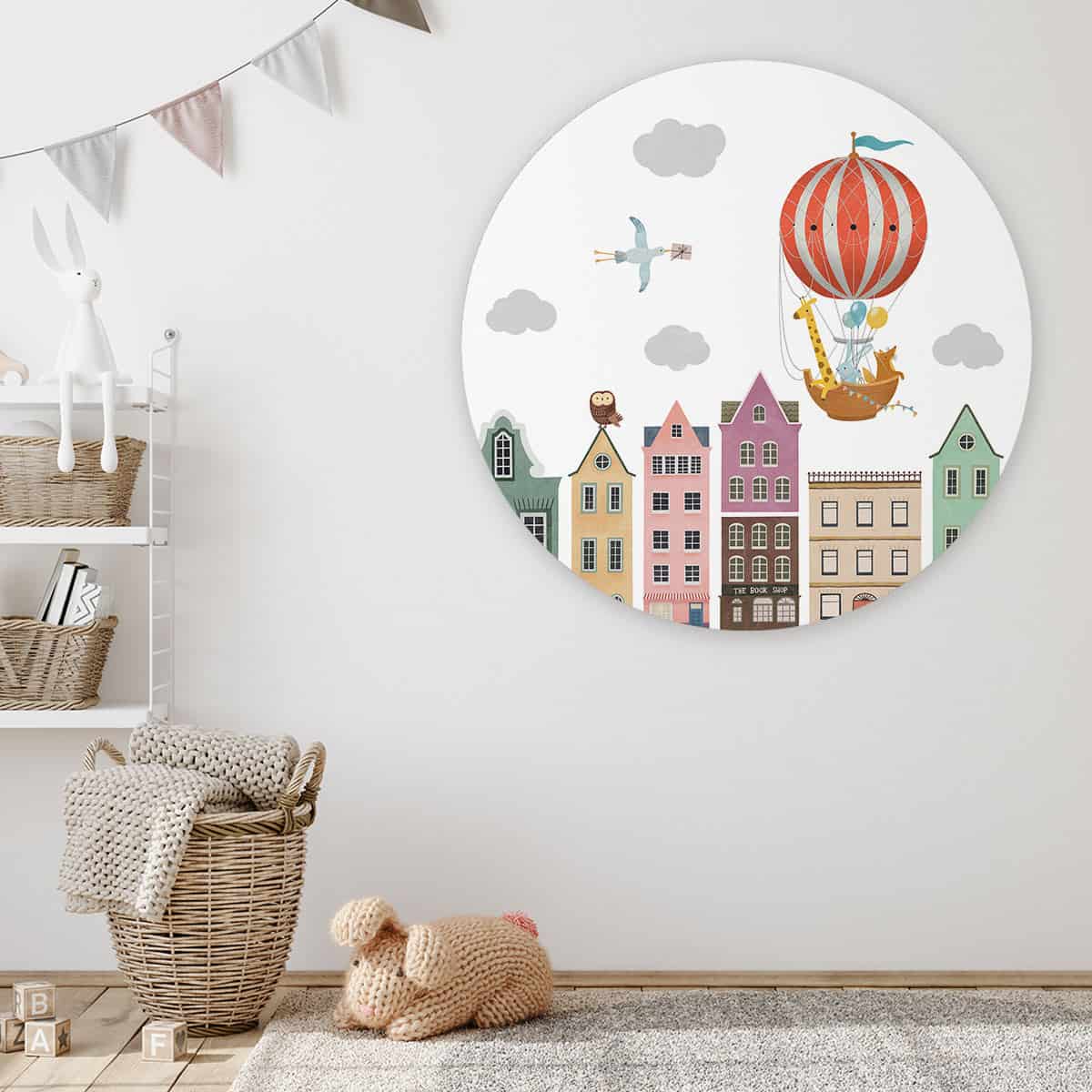 Dankzij het gratis meegeleverd ophangsysteem, hang je muurcirkel ‘Stad en luchtballonnen’ gemakkelijk en snel op. De mooie kleuren en stijl van de wandcirkel zal supermooi staan in de kamer van jouw kind of baby. En het is ook nog een erg leuk cadeau om te geven! Welke muurcirkel kies jij?