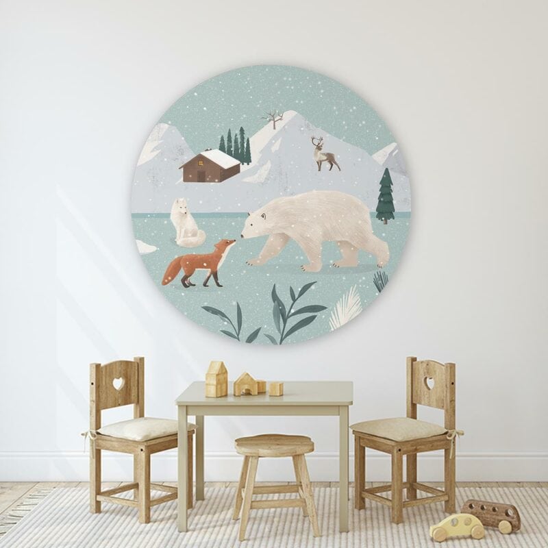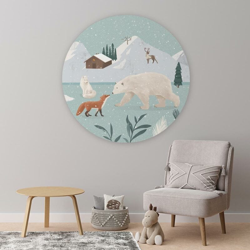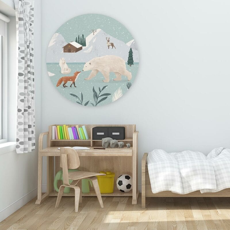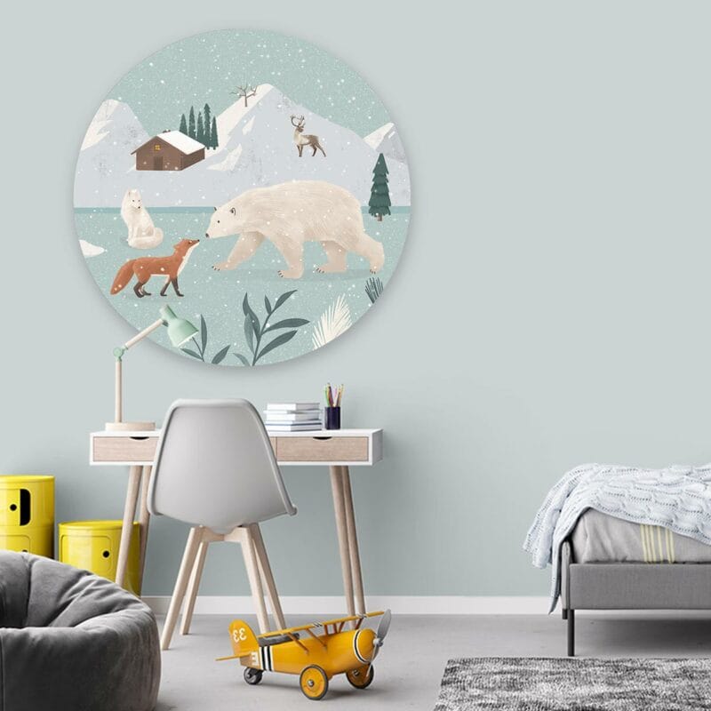 Onze prachtige ronde kunstwerken geven stijl aan elke kinderkamer, babykamer of speelkamer. In een handomdraai tover je de kamer om tot een fijne plek! Muurcirkel ‘Welkom op Antarctica’ wordt op een licht materiaal geproduceerd, heeft een uitstekende kleurweergave en een lichte structuur. Hierdoor krijgt de wandcirkel een stoere look.