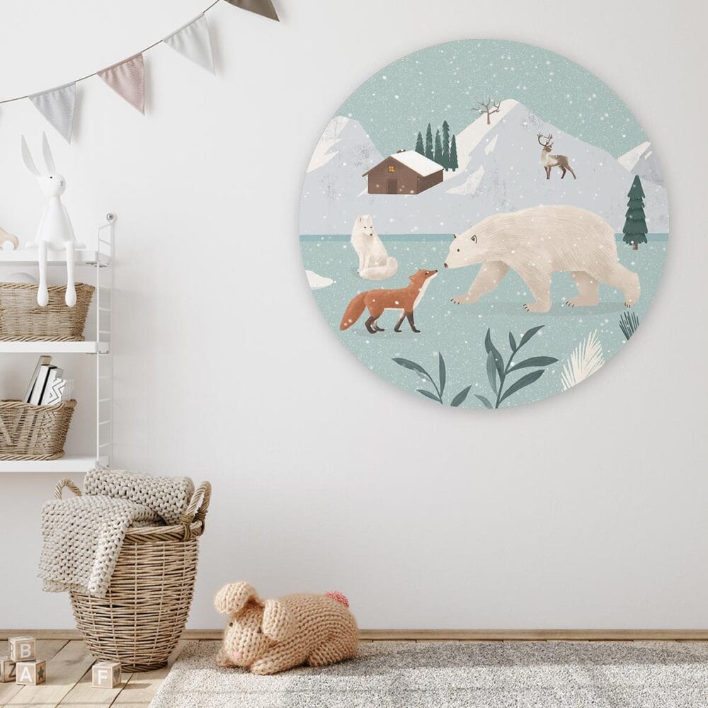 Onze prachtige ronde kunstwerken geven stijl aan elke kinderkamer, babykamer of speelkamer. In een handomdraai tover je de kamer om tot een fijne plek! Muurcirkel ‘Welkom op Antarctica’ wordt op een licht materiaal geproduceerd, heeft een uitstekende kleurweergave en een lichte structuur. Hierdoor krijgt de wandcirkel een stoere look.